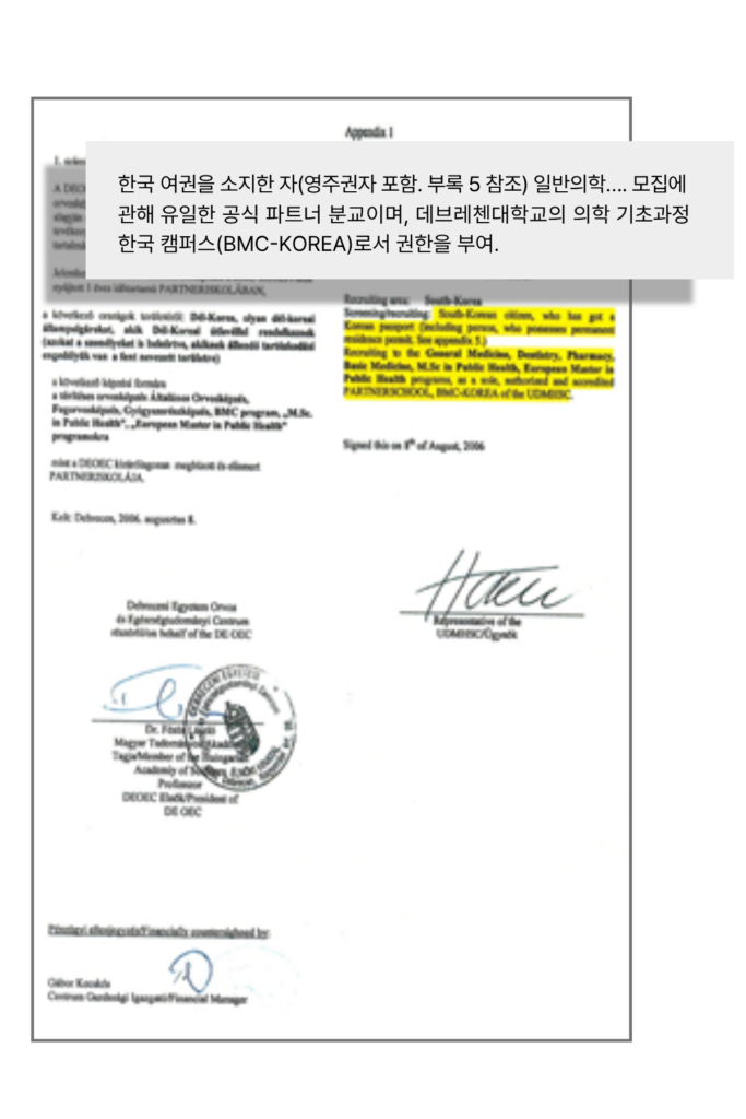 다른 3개 헝가리 의과대학은 한국 내 유학알선업체를 통해 학생을 모집한다.